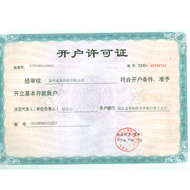 榮譽(yù)名稱:開戶許可證